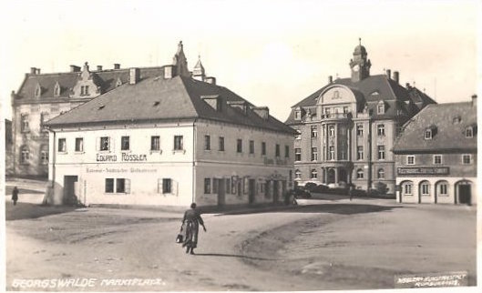 Datei:AK-Georgswalde-Marktplatz-mit-Kolonialwarengeschaeft-von-Eduard-Roessler.jpg