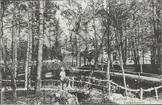 Datei:AK-Karltal-Maedchen-sitzt-auf-einem-Brueckengelaender-am-Parkeingang.jpg